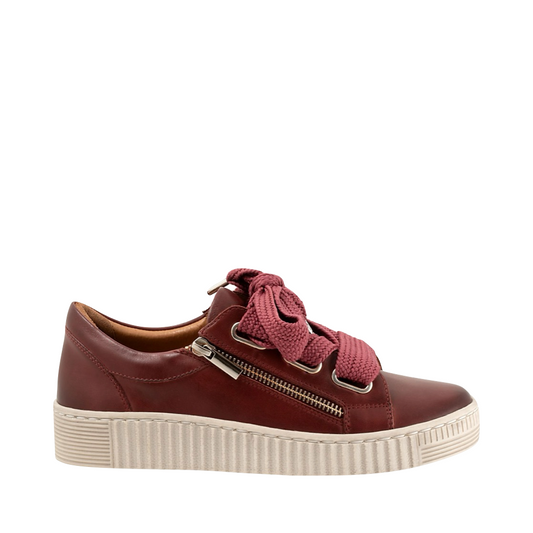 EOS Footwear Women's Jovi Leather Side Zip Lace Sneaker in Bordeaux
