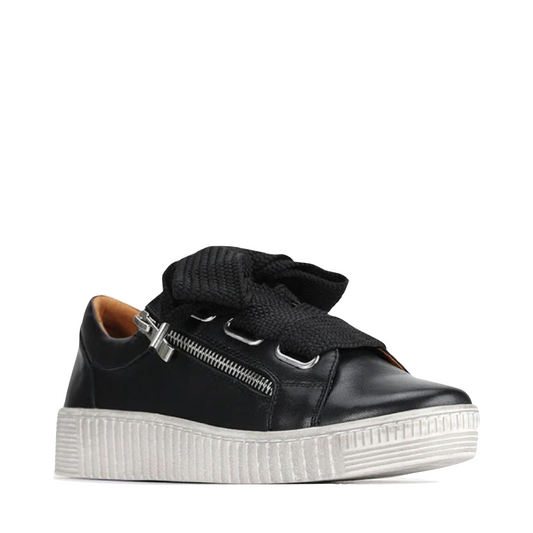 EOS Footwear Women's Jovi Leather Tie Sneaker in Black