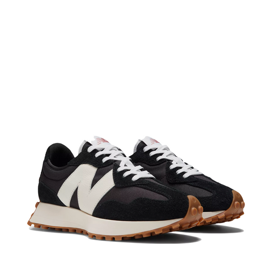 New Balance Women's 327 Lifestyle Sneaker in Black with White and Mineral Red