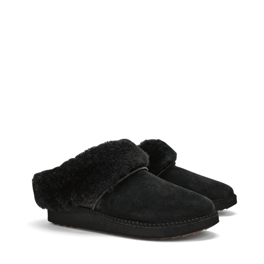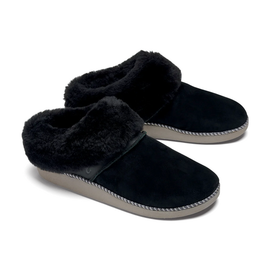 OluKai Women's Ku'i Shearling Lined Slip On Clog Slipper (Black)