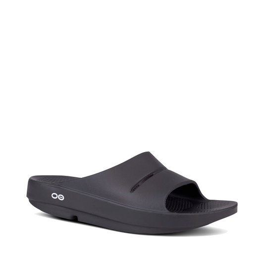 OOfos OOahh Sport Flex Adjustable Slide Sandal in Black