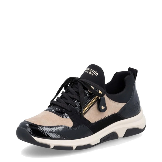Remote Women's Liv 02 Side Zip Waterproof Lace Sneaker in Schwarz Black
