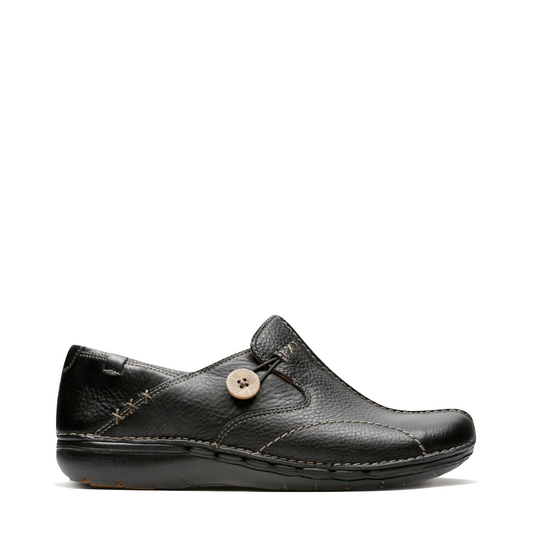Clarks Women's Un.Loop Leather Slip On Shoes in Black
