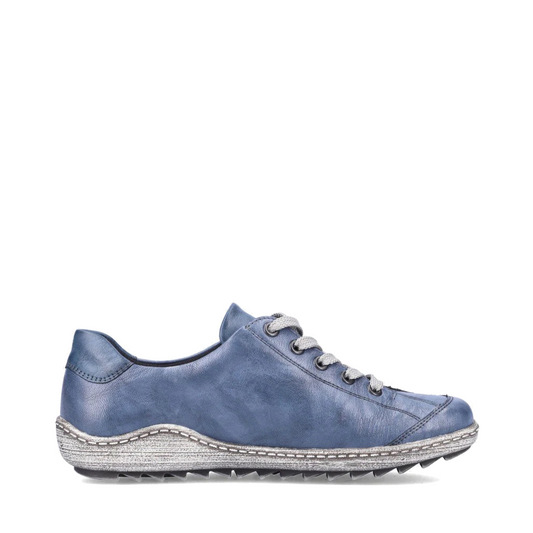 Remonte Women's Liv 02 Waterproof Side Zip Leather Lace Sneaker in Blue