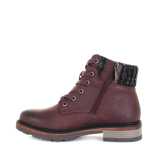 Wanderlust Women's Amy Knit Cuff Waterproof Lace Boot in Burgundy