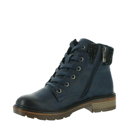 Wanderlust Women's Amy Knit Cuff Waterproof Lace Boot in Navy