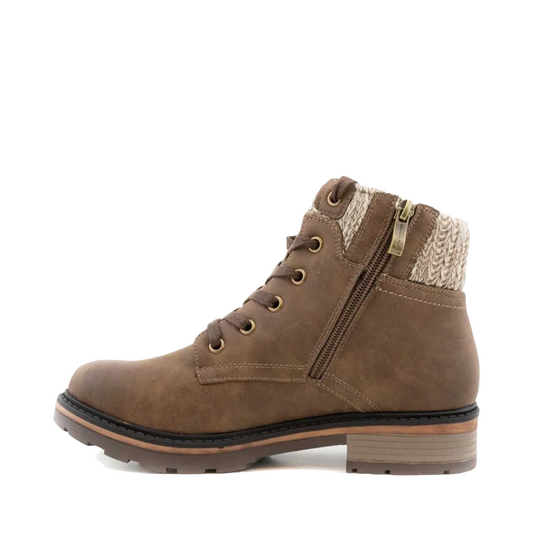 Wanderlust Women's Amy Knit Cuff Waterproof Lace Boot in Tan