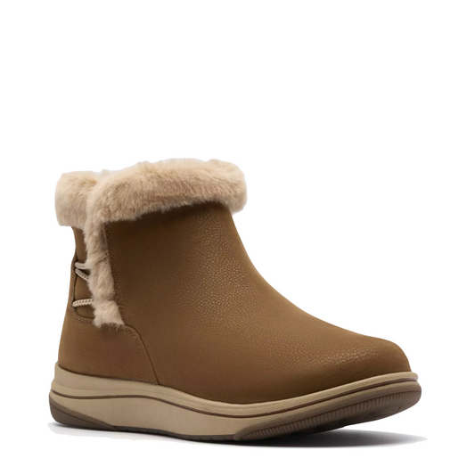Clarks Women's Breeze Fur Boot in Dark Tan Combination