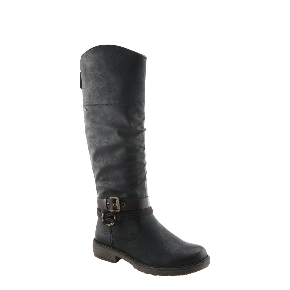 A tall boot designed to be universally flattering and fashionable by featuring a zipper extended calf down the back. Versatile to pair with any outfit all while featuring our Relife shock-absorbing, flexible sole for the best comfort.